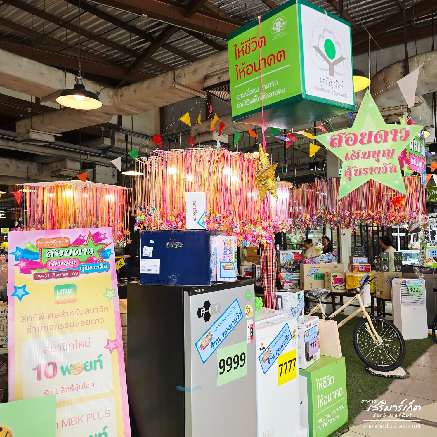 ทางตลาดเสรีมาร์เก็ตมอบเงินรายได้จากงานสอยดาวเติมบุญ ลุ้นรางวัล โดยไม่หักค่าใช้จ่ายทั้งหมด จำนวน 252,950 บาท ให้กับทางมูลนิธิยุวรักษ์ เพื่อนำไปช่วยเหลือเด็กเจ็บป่วยยากไร้ทั่วประเทศต่อไป ทั้งนี้ขอขอบพระคุณผู้เช่าร้านค้า และลูกค้าทุกท่านที่สนับสนุนงานสอยดาวเติมบุญ ลุ้นรางวัล ในครั้งนี้ด้วยดีเสมอมา