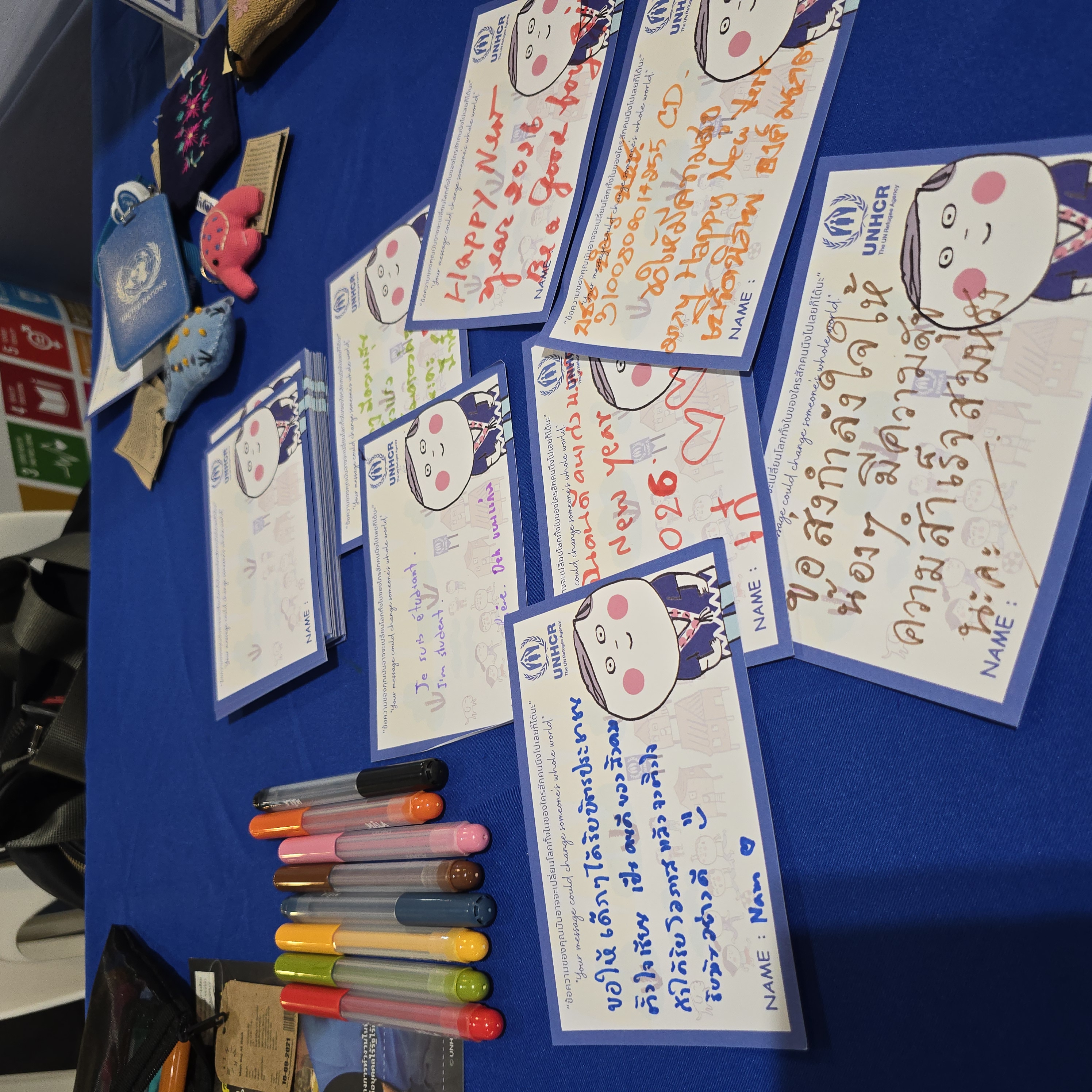 และเขียนโปสการ์ดให้กำลังใจน้องๆ โดย UNHCR ฯลฯ